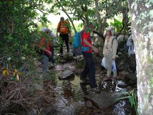 Después de 40 minutos de marcha a través de la sabana y, paradójicamente alejándonos del Auyantepuy, llegamos a otra quebrada, en medio de una galera de árboles. Allí aprovechamos para recargar los envases de agua, refrescarnos y revisar los pies, ya que lo peor que te puede ocurrir, es que se te formen ampollas, que dificultarían todo el resto del trayecto.