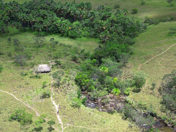 Después de unos 30 minutos, llegamos a una choza desde donde se puede subir al tepuy Kuravaina o acceder al pozo azul.