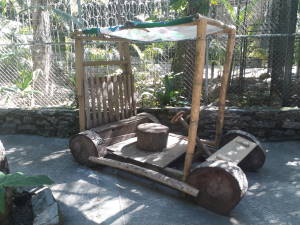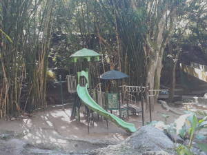 Los niños también pueden disfrutar del parque infantil, o con este simpático "trocon móvil" inspirado en los picapiedras. También se pueden reservar espacios para hacer piñatas