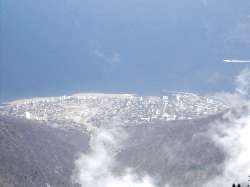 Lo más hermoso de esta bajada es poder observar, tal como se muestra en la foto de abajo, por un lado a Caracas y por el otro lado la costa, separados por el Ávila.
