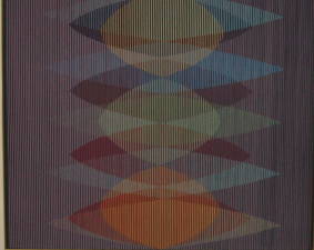 En la atmósfera cromoplástica (arriba), se nos da dos visiones completamente distintas según la veamos de frente o de lado, en donde se pueden apreciar unos rombos. La obra de Max Bill que vemos abajo, tiene la característica de que, al observala fijamente, todo el cuadro toma un solo color.