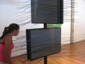 En esta sala también empezamos a apreciar las obras de otro gran artista venezolano, Carlos Cruz Diez, como la Fisicromía N 176. que se muesta a la izquierda y una obra de Jesús Soto denominada "Tríangulo y Cuadrado". Se empiezan a apreciar obras movibles, en donde hacer rotar un círculo o soplar para ver el movimiento, es parte de la experiencia