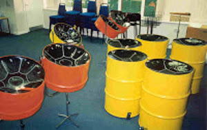 Su peculiaridad es que usa como instrumento principal unos tambores, fabricados a partir de barriles de petróleo reciclados, llamados steeldrums (‘tambores de acero’) o simplemente tambores metálicos de Trinidad, muy usados en los carnavales trinitarios. Esos tambores se crearon por la necesidad de percutir que tenían los descendientes de los africanos en estas islas y, dado que no poseían ningún instrumento, empezaron a percutir los barriles, los cuales se fueron abollando y luego estableciéndose alturas definidas, lo que haría que en el futuro el instrumento se pudiera templar con una escala cromática.