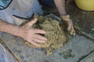 2. Amasado: Amasamos la arcilla hasta que tome la contextura deseada