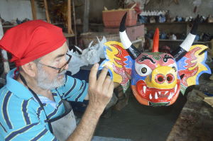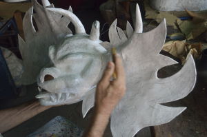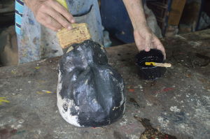 Proceso de elabaoración de máscara por el artesano Juan Morgado